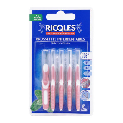 RICQLES 5 BROSSETTES INTERDENTAIRES RÉUTILISABLES 0.6MM en vente en ligne, sur le site de votre parapharmacie à prix discount.
