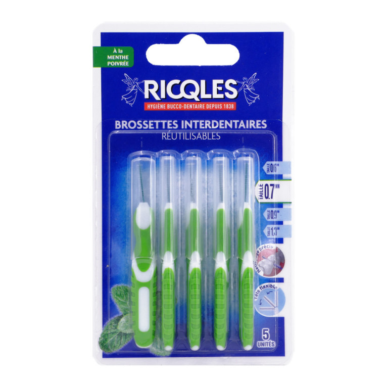 RICQLES 5 BROSSETTES INTERDENTAIRES RÉUTILISABLES 0.7MM en vente en ligne, sur le site de votre parapharmacie à prix discount.