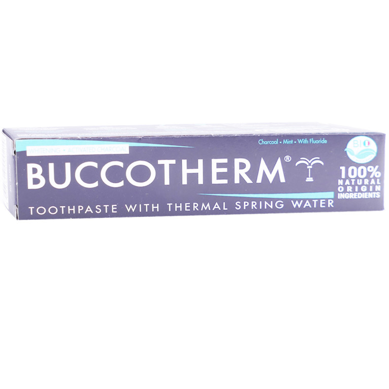 La marque BUCCOTHERM du laboratoire PIERRE FABRE est composée de produits et soins bucco-dentaires naturels ou certifiés biologiques pour une hygiène buccale parfaite et un bien-être au quotidien. Le Dentifrice au Charbon composé de charbon actif va purifier la sphère bucco-dentaire et favoriser naturellement le blanchiment des dents en éliminant les taches colorées causées par le thé, le tabac, le café ou le vin, tout en protégeant de leur réapparition par un effet de polissage. Il contient du citrate de zinc et du fluor associé à de l’Eau thermale de Castéra-verduzan pour éliminer la plaque dentaire sur la surface des dents et lutter contre son apparition ; et agir sur la protection des gencives sensibles et des dents. Au goût menthe 100% naturelle, l’haleine sera pure et très fraîche.