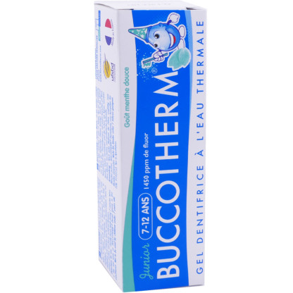 Gel dentifrice Junior BUCCOTHERM discount des laboratoires PIERRE FABRE, le gel dentifrice certifiée bio aromatisé dans votre parapharmacie en ligne à prix discount, qui nettoie parfaitement les dents et protège des caries chez les enfants de 7 à 12. Goût Menthe douce Chlorophylle.