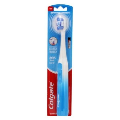 Colgate 360° Sonic Slim Tip la brosse à dents à piles à découvrir sur Pharmashopdiscount , une solution souple et complète pour un nettoyage bucco-dentaire optimal, maintenant à prix discount dans votre parapharmacie en ligne.