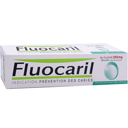 FLUOCARIL BI-FLUORE 250mg menthe est un gel dentifrice composé de fluor, préconisé dans la prévention de la carie dentaire en brossages réguliers chez les adultes et les enfants dès 10 ans.