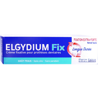 Crème Fixatrice Extra-Forte discount ELGYDIUM Fix des laboratoires Pierre FABRE, la tradition officinale dans votre parapharmacie en ligne à prix discount, dans une crème hautement efficace pour maintenir efficacement les prothèses dentaires et dentiers