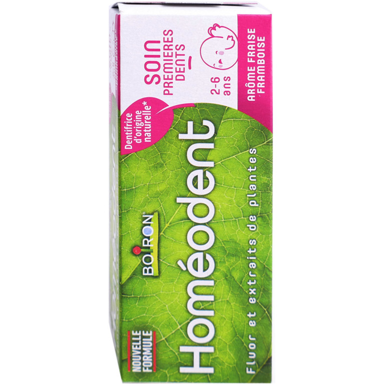 Homéodent premières dents de BOIRON, le dentifrice à l'arôme fraise framboise pour le nettoyage très doux des dents et des gencives des petits de 2 à 6 ans, dans votre parapharmacie en ligne à prix discount.