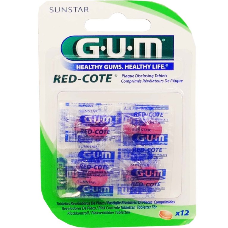 Les laboratoires SUNSTAR GUM sont spécialisés dans l’hygiène bucco-dentaire (bain de bouches, dentifrices…). Les Comprimés Red-Cote vont par leur formule permettre de détecter le reste de plaque dentaire présente sur les dents après le brossage. En croquant simplement le comprimé après le brossage des dents, la plaque dentaire restante se colore en rouge et permet un brossage efficace pour des dents totalement propres. Les comprimés ne tachent pas les dents, et la coloration s’élimine après le nouveau brossage des dents. Agréable à utiliser, les comprimés ont un léger goût de cerise.