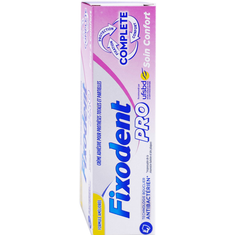 Fxodent Pro Complete Soin Confort discount de FIXODENT, la crème adhésive confort pour maintenir très efficacement les prothèses dentaires complètes et partielles sans risque d’irritation ou d’inflammation dans votre parapharmacie en ligne à prix discount.