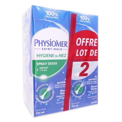 PHYSIOMER HYGIENE DU NEZ SPRAY DOUX LOT DE 2X135ML en vente en ligne, sur le site de votre parapharmacie à prix discount, est la solution idéale pour un nez dégagé et apaisé. Ce lot de deux sprays doux vous garantit une hygiène nasale optimale au quotidien