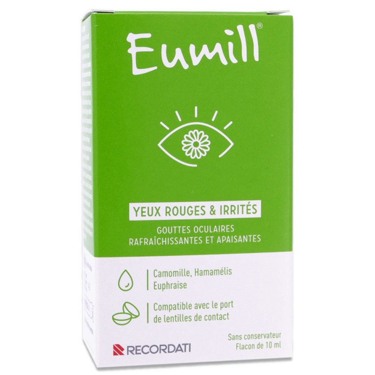 EUMILL GOUTTES OCULAIRES YEUX ROUGES & IRRITÉS 10ML est en vente en ligne sur le site de votre parapharmacie à prix discount, offrant une solution pour apaiser les yeux rouges et irrités, compatibles avec les lentilles de contact.