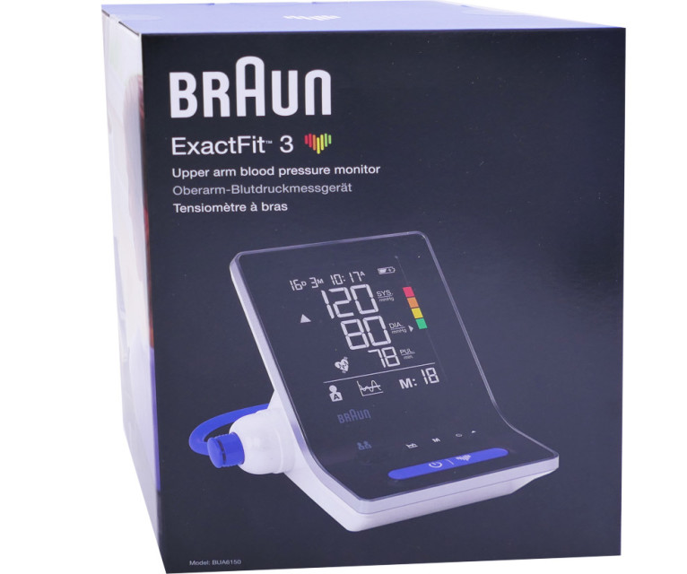 Le tensiomètre Exactfit 3 BP6100 de BRAUN, un tensiomètre qui bénéficie d’une haute technologie pour des mesures précises de la tension au niveau du bras.