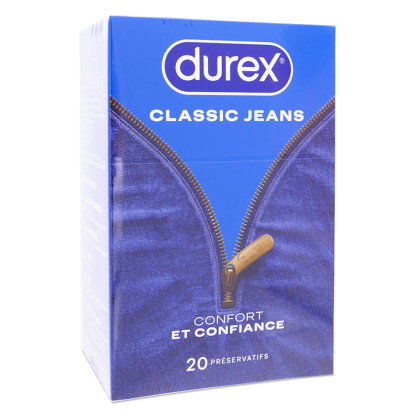 DUREX CLASSIC JEANS XL CONFORT ET CONFIANCE 20 PRESERVATIFS est disponible en vente en ligne à prix discount sur Pharmashopdiscount.