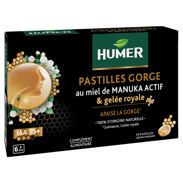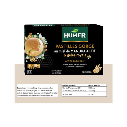 HUMER PASTILLES GORGE AU MIEL DE MANUKA ACTIF & GELEE ROYALE 16 PASTILLES en vente en ligne, sur le site de votre parapharmacie à prix discount.