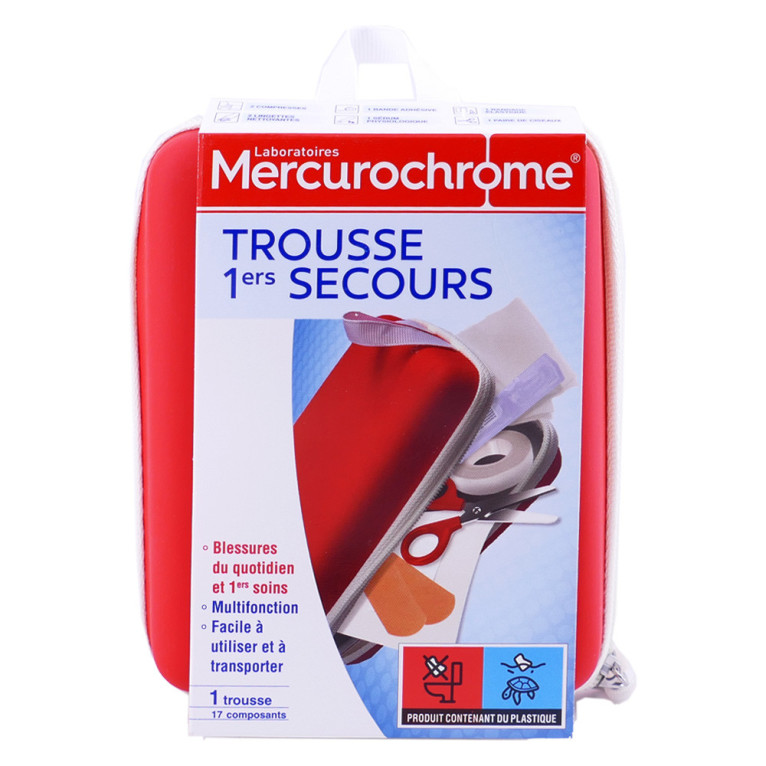 MERCUROCHROME TROUSSE 1ER SECOURS 17 COMPOSANTS