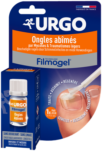 Filmogel Ongles Abîmés des laboratoires URGO à prix discount, la solution sous forme de pansement liquide, pour renforcer et réparer les ongles abîmés par une mycose ou un traumatisme léger, dans votre parapharmacie en ligne discount. A partir de 3 ans