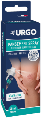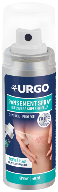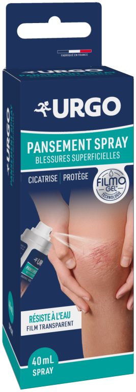 Le laboratoire URGO conçoit des produits pour le soin des mains, des pieds, des plaies cutanées et buccales, des vitamines... Pansement Spray Filmogel est un dispositif innovant, un pansement transparent sous forme de spray, qui va laisser un film protecteur invisible à la surface de la plaie grâce à sa technologie Filmogel. Sa formule va isoler la blessure et la protéger, et participer à sa cicatrisation tout en laissant respirer la peau. En format spray, ce pansement liquide permet d’être utilisé sur toutes les parties du corps (coudes, genoux, doigts). Pansement Spray Filmogel résiste à l’eau et aux frottements.