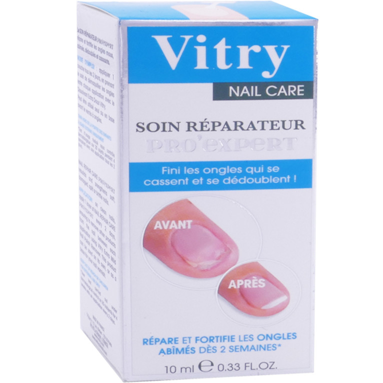 Le laboratoire VITRY conçoit des produits cosmétiques brevetés pour le soin des mains et des pieds, le maquillage des yeux, et des accessoires de manucure. SOIN REPARATEUR PRO EXPERT de Vitry sublime les ongles tout en ayant des propriétés protectrices, restructurantes, fortifiantes, densifiantes, et embellissantes pour assurer leur résistance et leur santé. Ce soin est un soin concentré qui répare, nourrit et protège les ongles mous, fins, cassants et dédoublés. Il agit sur le renforcement, l'épaisseur et l'hydratation des ongles. Peut-être utilisé seul ou en base avant le vernis à ongle, toute l'année.