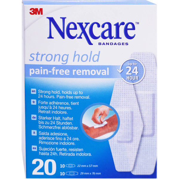 NEXCARE Strong Hold Assortis de 3M est spécialement conçu pour protéger les plaies légères grâce à sa composition hypoallergénique à base de silicone respirant respectueuse des peaux sensibles et sa compresse anti-adhérente qui permet un retrait indolore et tout en douceur ! Le pansement à forte adhérence reste bien en place pendant 24 heures sans irriter la peau délicate et sensible. Fabriqué sans latex naturel