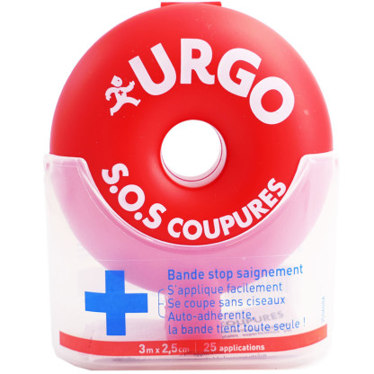 URGO S.O.S COUPURES BANDE STOP SAIGNEMENT 3MX2.5CM est un produit de qualité développé par le laboratoire URGO. Cette bande est spécialement conçue pour stopper les saignements rapidement et efficacement.