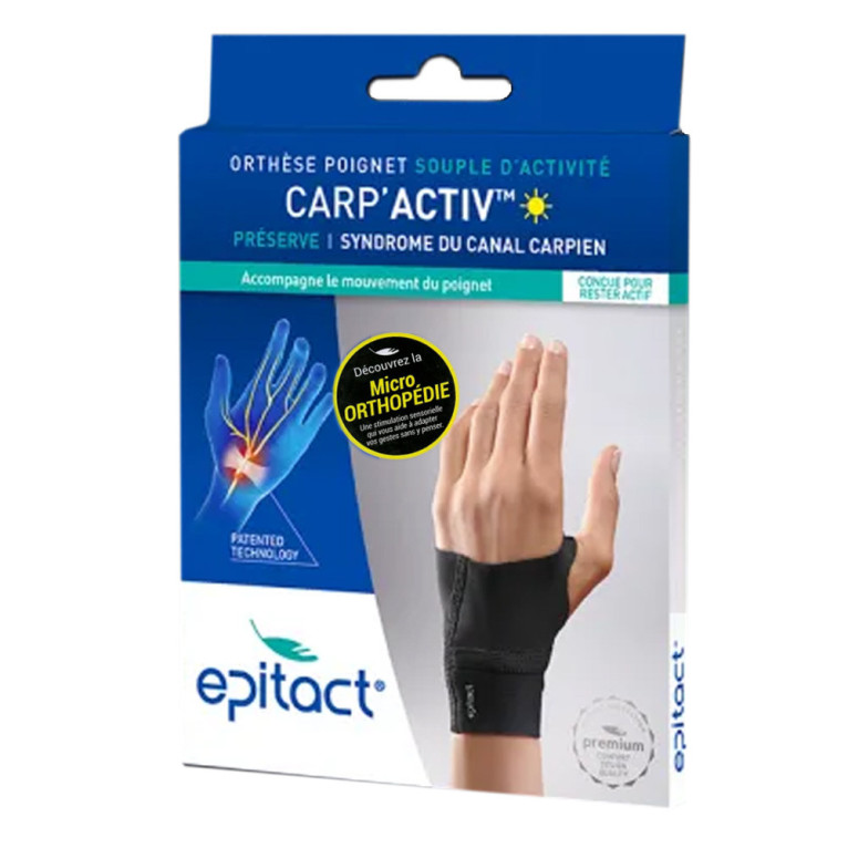 EPITACT ORTHESE POIGNET GAUCHE CARP'ACTIV en vente en ligne sur le site de votre parapharmacie à prix discount est une solution efficace pour soulager les douleurs liées au syndrome du canal carpien, aux troubles musculo-squelettiques, et aux tendinites du poignet. Main gauche, différentes tailles.