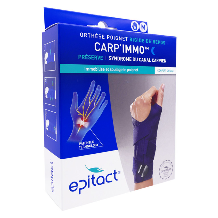 Le laboratoire EPITACT a conçu des produits pour apporter soin et confort aux problèmes de pieds. L’orthèse Poignet Rigide Carp’Immo corrige et soulage en immobilisant et luttant contre le syndrome du canal carpien, les troubles musculo-squelettiques, les inflammations ou les tendinites du poignet, qui font souffrir. Elle permet de faire un écart entre le pouce et l’index pour que le pouce soit au repos et ainsi évite tout traumatisme grâce à son tissu fin et son renfort de maintien qui maintient l’alignement de l’articulation et réduit la douleur. Rigide et réglable pour s’adapter à la morphologie de la main, discrète et ultrafine, l’orthèse se fera oublier. L’orthèse se lave en machine à 30°C pour une bonne protection longue durée