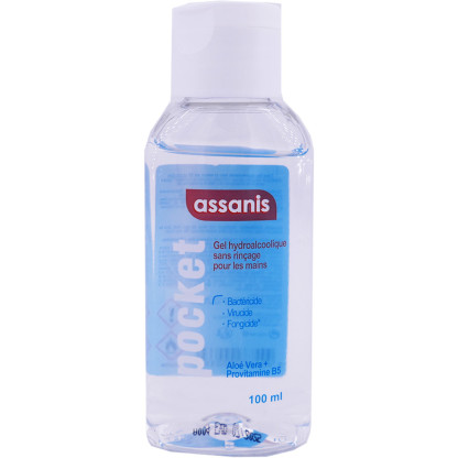 Le Gel Hydroalcoolique Pocket ASSANIS désinfecte les mains rapidement et permet de respecter les gestes barrières grâce à sa formule à base d’éthanol. Ce produit est bactéricide, fongicide, et virucide ; il élimine les bactéries, les virus et les champignons microscopiques. Ce gel hydroalcoolique contient également de l’aloe vera et de la pprovitamine B5 pour l’hydratation des mains. Très pratique, le Gel Hydroalcoolique Pocket ASSANIS au petit format, ne nécessite pas de rajout d’eau ou de savon ni de rincer les mains.