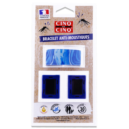 Fabriqué par CINQ SUR CINQ, ce bracelet est imprégné d'un polymère breveté contenant de l'huile d'eucalyptus citriodora et du lavandin, reconnus pour leurs propriétés répulsives. Adapté pour les adultes et les enfants de plus de 3 ans, avec précaution jusqu'à 6 ans, ce produit offre une efficacité contre les moustiques et moustiques tigres jusqu'à 30 jours avec les 2 coques inclues. Le bracelet est waterproof, ce qui le rend idéal pour une utilisation quotidienne et dans diverses conditions climatiques. Il est également rechargeable, assurant une utilisation prolongée et économique.