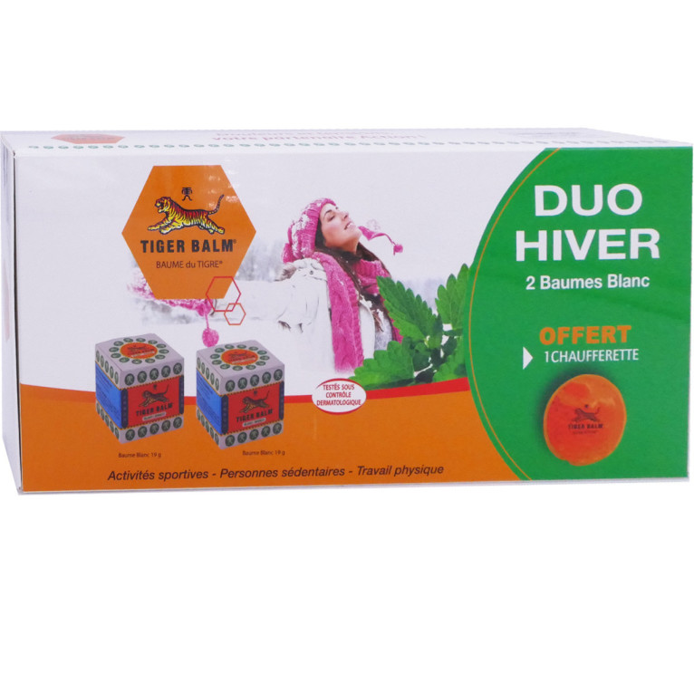 Le coffret Duo Hiver discount TIGER BALM, 2 baumes du Tigre Blanc dans votre parapharmacie en ligne à prix discount, recommandé en massage de récupération musculaire après l'effort . 2 pots + 1 chaufferette offerte