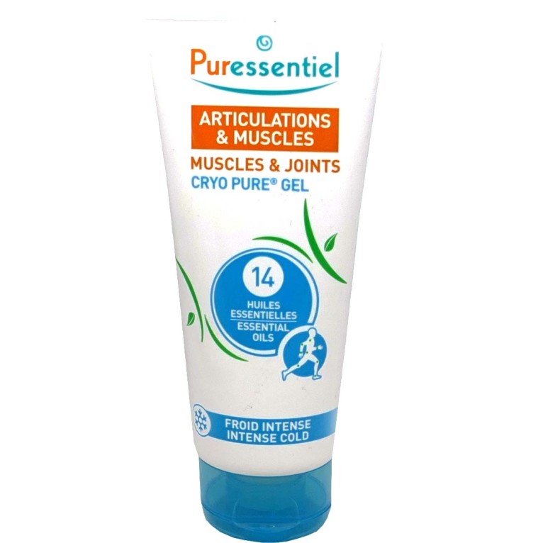 Puressentiel propose un large choix de produits d’aromathérapie et de cosmétique naturelle formulés à base d’huiles essentielles et d’actifs issus de la nature pour assurer santé et bien-être à l’organisme dans le respect son environnement. La gamme Puressentiel Articulations offre des produits formulés à base d’huiles essentielles pour apaiser les tensions musculaires et articulaires. Le Gel Articulations & Muscles Cryo pure est composé de 14 huiles essentielles aux vertus antalgiques, anti-inflammatoires, décontracturantes et apaisantes et de menthol, spécialement associées pour soulager les douleurs musculaires et musculaires rapidement et pour longtemps. Ce gel à l’effet froid, utilisé en massage pour allier les bénéfices du produit à ceux du mouvement, libère ses actifs par pénétration épidermique et réduit rapidement l’intensité de la douleur. Il contient du menthol naturel pour procurer un effet froid instantané et ainsi calmer immédiatement la douleur Sa texture non grasse et non collante pénètre rapidement à l’application. Testé sous contrôle dermatologique et kiné, Sans colorant - Sans parfum de synthèse - Sans huiles minérales