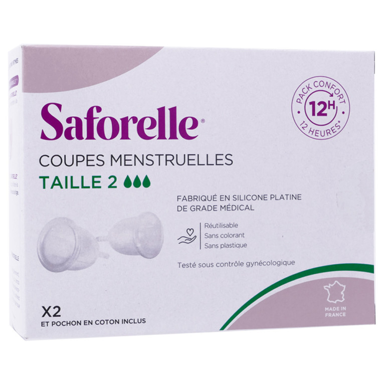 SAFORELLE 2 COUPES MENSTRUELLES TAILLE 2 : découvrez une solution pratique et confortable pour vos règles, en vente en ligne sur le site de votre parapharmacie à prix discount.