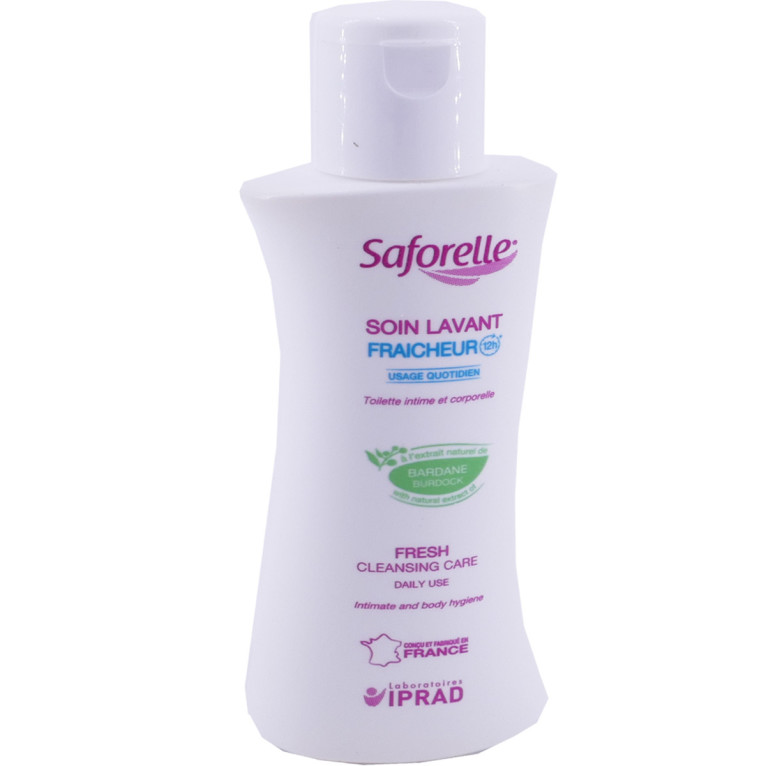 Afin de répondre aux besoins spécifiques de la sphère intime féminine, SAFORELLE a conçu une gamme de soins élaborés à partir d’extraits naturels de Bardane, plante herbacée aux propriétés apaisantes et adoucissantes utilisée depuis l’antiquité, pour participer chaque jour à la protection de cette intimité. LE SOIN LAVANT FRAICHEUR SAFORELLE, à la formule haute tolérance sans savon, au pH alcalin est spécialement conçu pour laver en douceur même les peaux les plus sensibles. Sa texture gel vous assure une sensation de fraîcheur immédiate et continue pendant 12 heures. Formule Testée sous contrôle médical par des gynécologues et des dermatologues, sans phenoxyethanol, sans paraben, sans savon, sans colorant.