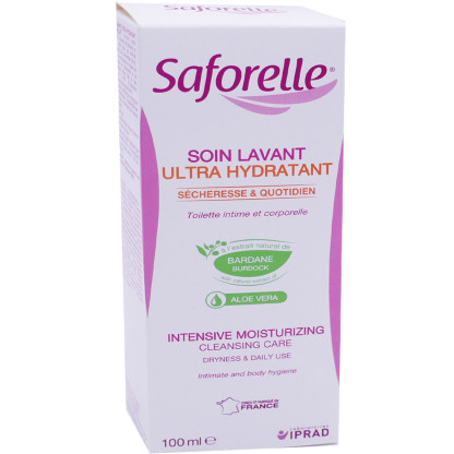 Afin de répondre aux besoins spécifiques de la sphère intime féminine, SAFORELLE a conçu une gamme de soins élaborés à partir d’extraits naturels de bardane, plante herbacée aux propriétés apaisantes et adoucissantes utilisée depuis l’antiquité, pour participer chaque jour à la protection de cette intimité. Le soin lavant ultra-hydratant SAFORELLE, à la formule haute tolérance sans savon, au pH alcalin doux, enrichie en agents surgras, extrait de bardane et en aloe vera, est spécialement conçu pour laver en douceur, et restaurer l’hydratation de la peau et des muqueuses en cas de sécheresse intime, irritations pouvant être causés par la prise de certains médicaments, la ménopause. Formule Testée sous contrôle médical par des gynécologues et des dermatologues, sans phenoxyethanol, sans paraben, sans savon.