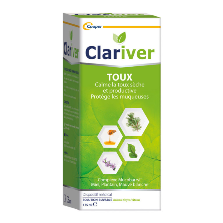 Découvrez le sirop CLARIVER, élaboré par le laboratoire renommé Cooper. Ce complément alimentaire est à base d'un complexe Mucobarryl, de mauve blanche, de miel, de mélèze et de plantain. La mauve aide à apaiser la bouche et de la gorge en cas de chatouillement dans la gorge et du pharynx. Sa formule douce et efficace en fait un allié de choix pour toute la famille dès 12 ans. Son délicieux goût miel et son arôme thym, citron sont idéales pour une prise facile.