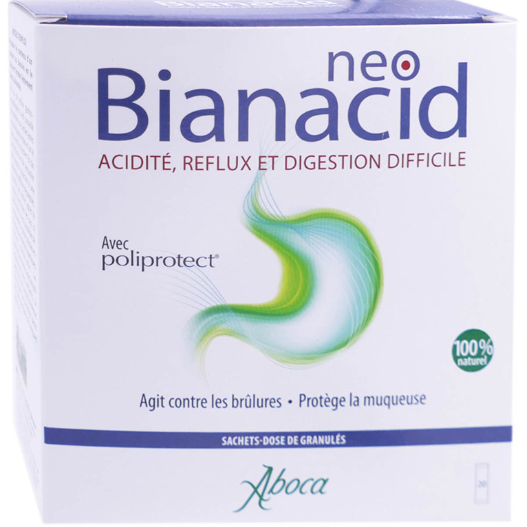 Neo Bianacid est indiqué entre autre pour le traitement des maux & brûlures d'estomac, reflux gastro-oesophagien, gastrite et symptômes associés à la dyspepsie (digestion difficile)
