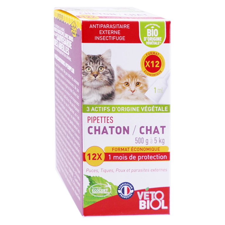VETOBIOL BIO ANTIPARASITAIRE PIPETTES CHATON / CHAT 12X1ML