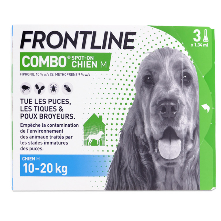FRONTLINE Combo chien discount 10-20 kg pipettes, l’efficacité redoutable dans votre parapharmacie en ligne à prix discount, pour éliminer les puces et les tiques et stopper l’infestation de l’habitat.