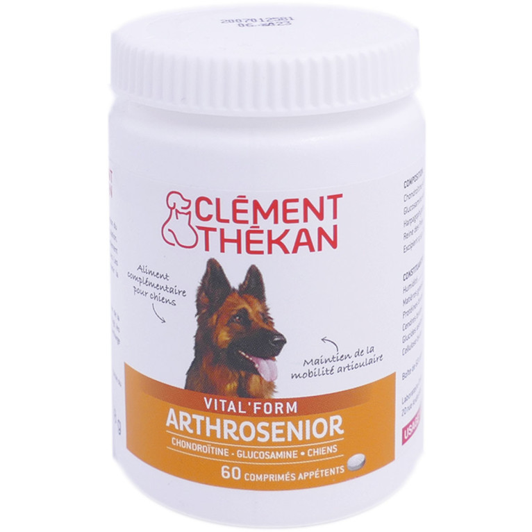Arthrosenior de CLEMENT THEKAN, le complément alimentaire qui soulage les douleurs articulaires et stimule la régénération du cartilage chez les chiens, dans votre parapharmacie en ligne à prix discount