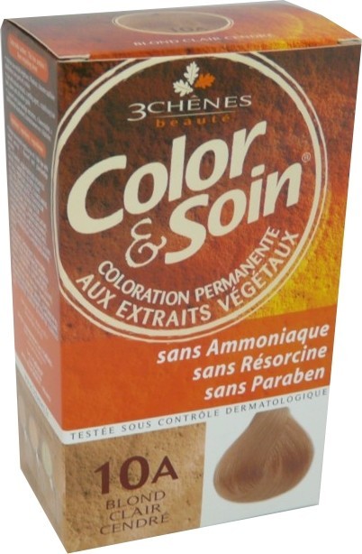 Color & Soins coloration permanente aux extraits végétaux des laboratoires 3 Chênes, efficacité, naturalité et innovation dans une coloration qui offre soin et reflets intenses aux cheveux, protection et douceur aux cuirs chevelus les plus sensibles. 10A Blond Clair cendré.