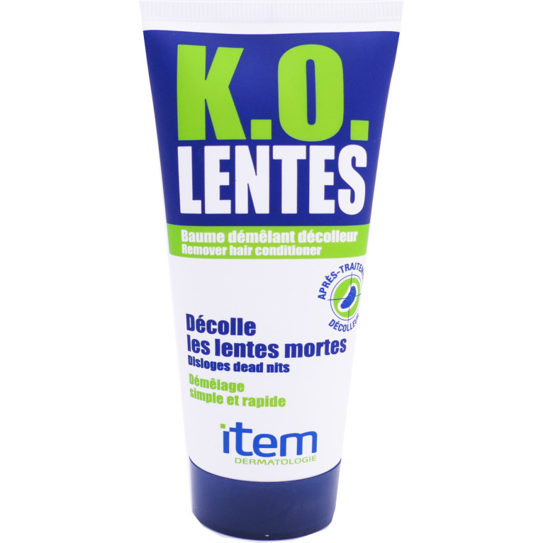 Depuis 60 ans, la marque ITEM référence en soin capillaire, propose une large gamme d’hygéniothérapie des cuirs chevelus et cheveux à problèmes : états squameux, états séborrhéiques, chute de cheveux, cheveux fragilisés… K.O. LENTES est un baume après-shampooing sans insecticide chimique respectant le cheveu et le cuir chevelu à base d’huiles essentielles (myrte, noyau d’abricot, vaseline, eucalyptus, romarin,… qui va permettre de décoller les lentes mortes par les traitements anti-poux et lentes. Les lentes seront décollées par attaque de la coque cireuse et la colle qui les retient aux cheveux sera dissoute. Ce baume après-shampooing contient des lipoaminoacides d’avoine d’origine végétale pour laisser après le soin les cheveux doux, brillants et facile à coiffer.