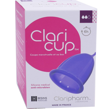 CLARICUP de Claripharm discount, 1 coupe menstruelle réutilisable confort dans votre parapharmacie en ligne à prix discount pour protéger lors des règles menstruelles aux flux abondant.