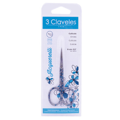 3 Claveles Ciseaux à envies courbe à prix discount dans votre parapharmacie en ligne, des ciseaux pour couper tout en douceur les cuticules autour des ongles. Convient aux mains et pieds. Motifs Acquerelli Bleu