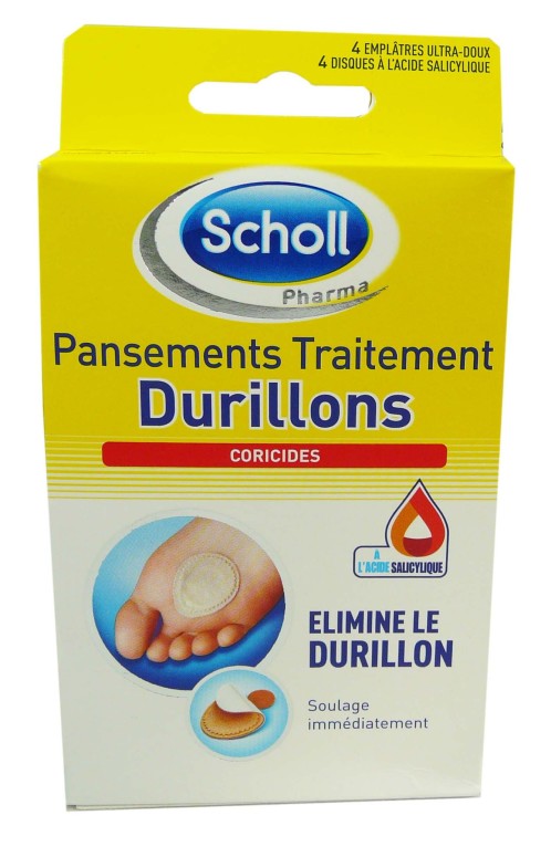 Le laboratoire SCHOLL conçoit des produits experts et chaussures pour apporter confort et bien être aux pieds au quotidien. Les pansements éliminent les durillons, protègent et calment grâce au disque coricide ainsi qu’aux emplâtres ultra-doux. La peau saine autour du durillon est préservée de toutes bactéries ou prolifération par son adhésif renforcé. Jour après jour, le durillon disparaît, la peau est apaisée de toute douleur dès l’application du pansement.