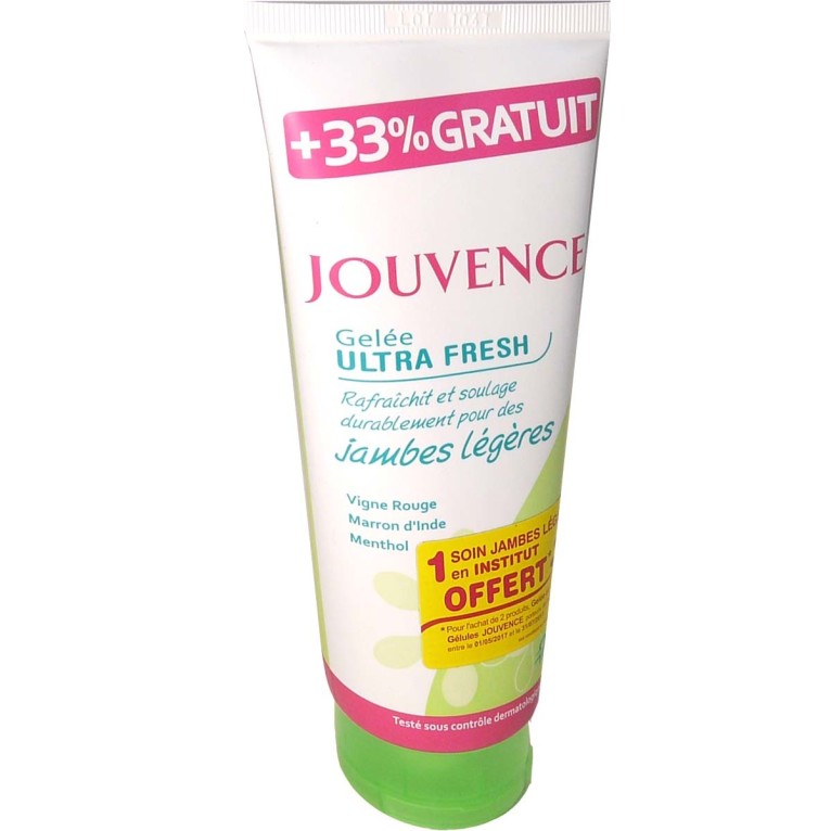 La gamme JOUVENCE du laboratoire OMEGA PHARMA est composée de produits pour soulager les pieds et jambes fatiguées et retrouver légèreté et confort. Gelée Ultra-Fresh JOUVENCE améliore la microcirculation sanguine des jambes, apaise et laisse une grande sensation de fraicheur grâce à l’extrait de vigne rouge, au Marron d’Inde ainsi qu’au menthol qui sont des ingrédients d’origine naturels. Les jambes sont plus légères, fraîches et plus confortables. Sa texture gel ne laisse pas de film gras et ne colle pas. Très pratique, elle peut être appliquée sur les collants. Testée sous contrôle dermatologique