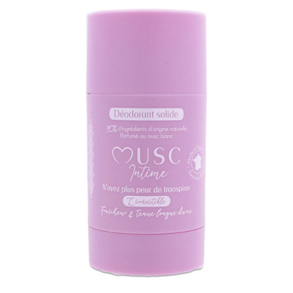 MUSC INTIME DÉODORANT SOLIDE L'IRRÉSISTIBLE 50G, une formule innovante qui allie fraîcheur et douceur, est en vente en ligne sur le site de votre parapharmacie à prix discount. Ce déodorant solide au parfum envoûtant de musc blanc vous offre une sensation de confort tout au long de la journée.