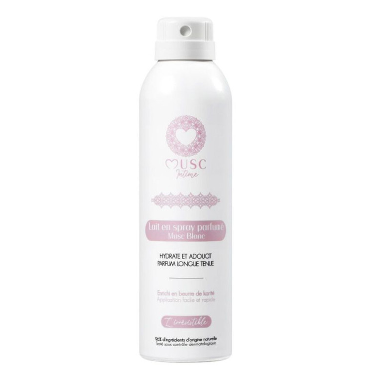 MUSC INTIME LAIT EN SPRAY MUSC BLANC "L'irrésistible" 200ML est en vente en ligne sur le site de votre parapharmacie à prix discount, offrant une hydratation douce pour tous types de peau.