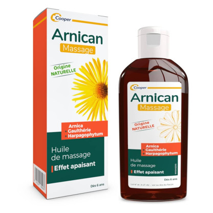 Le laboratoire Cooper a développé cette huile de massage à base d'arnica, une plante reconnue pour ses propriétés calmantes et réparatrices.