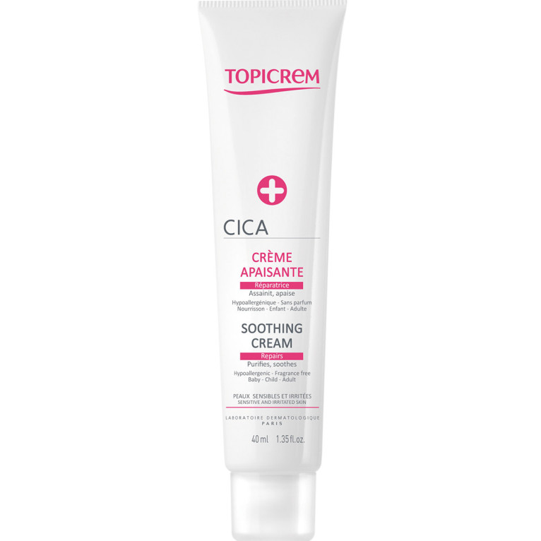 La crème CICA réparatrice de TOPICREM, la crème qui répare les peaux sensibles et irritées (gerçures, dartres, rougeur du siège,…) du visage, du corps et des muqueuses externes de toute la famille (nourrisson, enfant, adulte).