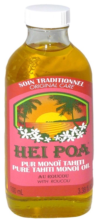 Depuis 40 ans, la petite bouteille culte de Monoï HEI POA répand son parfum exotique, véritable voyage sensoriel au cœur de la Polynésie. Le monoï est une huile extraite de la pulpe de coco dans laquelle ont macéré des fleurs fraîches de Tiaré. HEI POA propose un monoï de grande qualité, élaboré dans le respect et la tradition polynésienne, garanti par la mention « Appellation d’Origine ». Le Monoï offre ses vertus hydratantes, nourrissantes et réparatrices à travers de nombreux usages possibles : en massage, soins des cheveux, du corps ou du visage… Le pur monoï de Tahiti de HEI POA, à l’huile de Roucou, très riche en béta-carotène, est un soin indiqué pour préparer la peau à l’exposition solaire. Il peut également être utilisé en soin après-soleil pour sublimer et prolonger le bronzage. Le pur monoï de Tahiti exhale ses notes délicates de Tiaré, fleur emblématique de la Polynésie pour un pur moment d’évasion.