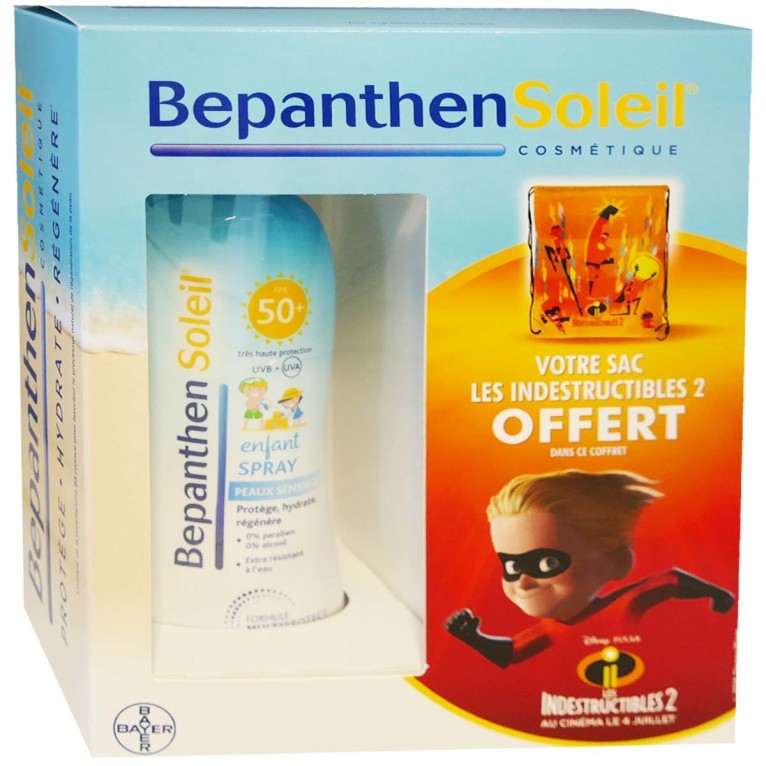 Le Coffret Soleil Enfant BEPANTHEN discount, un Spray enfant 50+ et un sac dans un coffret dans votre parapharmacie en ligne à prix discount, pour profiter de la plage sans agresser la peau des tout-petits par le soleil : Spray Enfant 50+ et Sac « Les indestructibles » offert. Peaux sensibles et fragiles du visage et du corps.