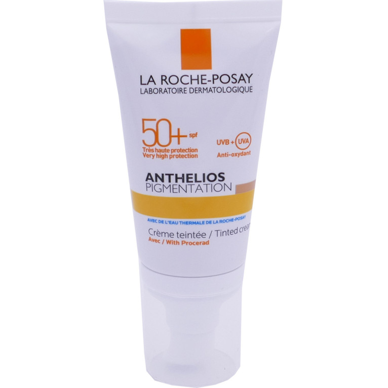 La gamme Anthelios de LA ROCHE POSAY est composée de soins solaires et hydratants pour les peaux sensibles ou allergiques au soleil de toute la famille formulés avec des formules de haute tolérance. Anthelios Anthelios Pigmentation SPF50+ est soin solaire dermatologique très haute protection (SPF50+) qui protège des rayons UVA/UVB longs et courts à large spectre et dela lumière visible grâce à sa technologie XL-Protect filtrant les rayons (supérieur à la norme européenne), et préserve les cellules de l’épiderme. Riche en Procerad et en pigmentsteintés, elle prévient l’hyperpigmentation causées par la lumière visible, et unifie le teint pour retrouver sa clarté. L’eau thermale de La Roche-Posay calme les rougeurs et hydrate la peau. Sa texture crème teintée et non collante laisse la peau douce dès l’application pour retrouver une peau unifiée et un visage clair. Elle ne laisse pas de traces blanches sur la peau, et est très vite absorbée. Elle résiste très bien à l’eau. Testé sous contrôle dermatologique. Sans parfum, non comédogène