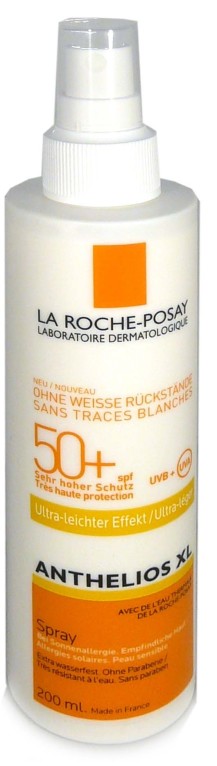 La gamme Anthelios de LA ROCHE POSAY est composée de soins solaires et hydratants pour les peaux sensibles ou allergiques au soleil de toute la famille formulés avec des formules de haute tolérance. Sa très haute protection (SPF50+) protège des rayons UVA/UVB longs et courts à large spectre grâce à son système filtrant breveté Mexoryl SX et XL®, et préserve les cellules de l’épiderme et prévient les taches sur la peau liées au soleil. L’eau thermale de La Roche-Posay calme les rougeurs et hydrate la peau. Sa texture ultra légère et non grasse laisse la peau douce dès l’application. Elle ne laisse pas de traces blanches sur la peau, et est très vite absorbée. Elle résiste très bien à l’eau. Son format en spray permet une application homogène même aux endroits inaccessibles du corps.