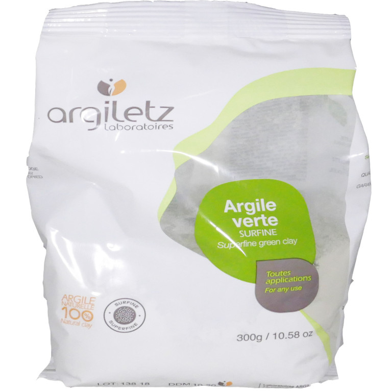 L’argile verte surfine, poudre fine d’environ 60 microns, s’utilise en application externe sur le visage et le corps. Elle possède des vertus adoucissantes, purifiantes, décongestionnantes, tonifiantes et est idéale pour le soin des peaux à tendance grasse.